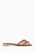 Aquazzura Temptation Crystal Slides in Leather & Mesh Image 1